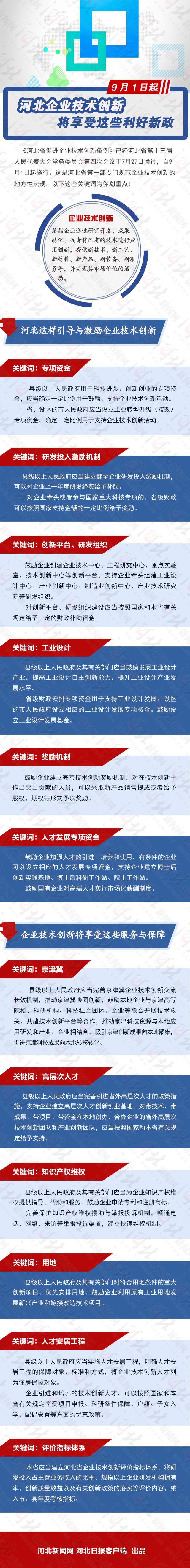 河北省促進企業(yè)技術創(chuàng)新條例》已經(jīng)河北省第十三屆人民代表大會常務委員會第四次會議于7月27日通過,自2018年9月1日起施行。這是河北省部專門規(guī)范企業(yè)技術創(chuàng)新的地方性法規(guī)。以下這些關鍵詞為你劃重點!