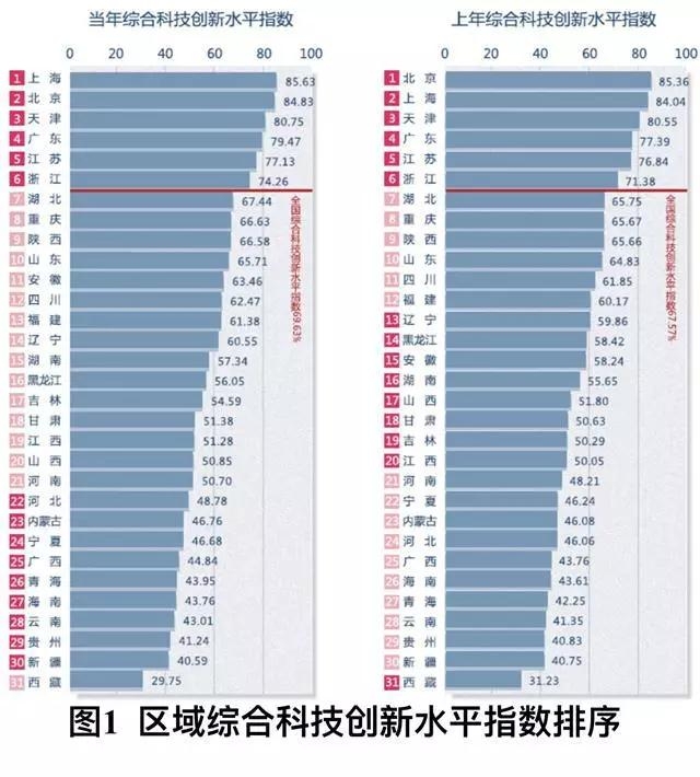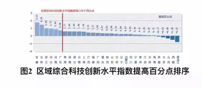 導語:10月29日,《中國區(qū)域科技創(chuàng)新評價報告2018》(簡稱《報告》)在浦江創(chuàng)新論壇上發(fā)布!秷蟾妗凤@示,中國區(qū)域科技創(chuàng)新水平穩(wěn)步提升,全國綜合科技創(chuàng)新水平指數(shù)為69 63%,比上年提高2 06個百分點。